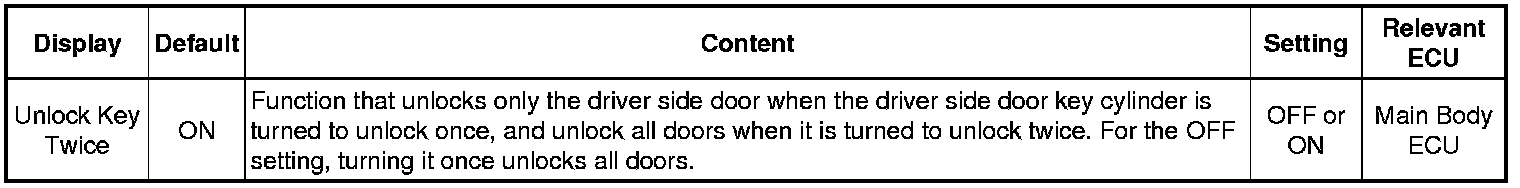 DOOR LOCK: POWER DOOR LOCK CONTROL SYSTEM: CUSTOMIZE PARAMETERS