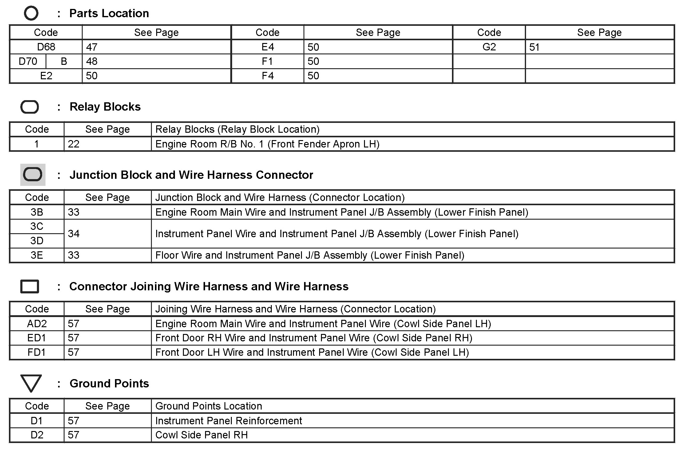 Locations: The locations of components, connectors, ground points, and splices referred to within these diagrams can be found at Vehicle Locations. Locations