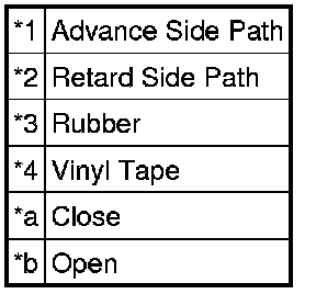 (2) Prick a hole in the tape placed on the advance side path. Prick a hole in the tape placed on the retard side path, on the opposite side to that of the advance side path, as shown in the illustration.