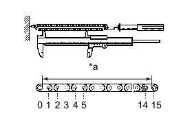 The vernier caliper must be in contact with the chain rollers when measuring.