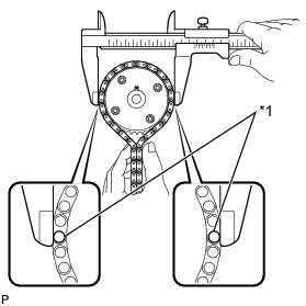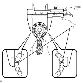 (a) Using a vernier caliper, measure the No. 2 chain vibration damper wear.