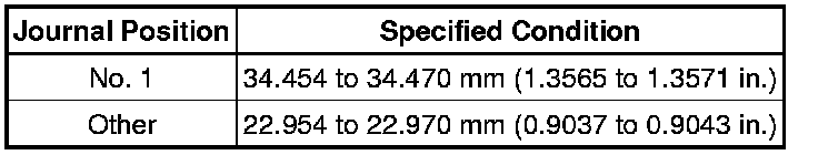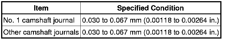 If the journal diameter is not as specified, check the camshaft oil clearance.