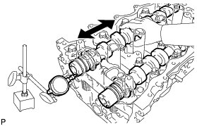 (c) Using a dial indicator, measure the thrust clearance while moving the camshaft back and forth.