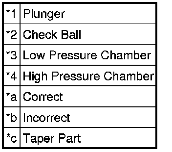 When bleeding the high-pressure chamber, make sure that the tip of SST is actually pressing the check ball as shown in the illustration. If the check ball is not pressed, the high-pressure chamber will not be bled.