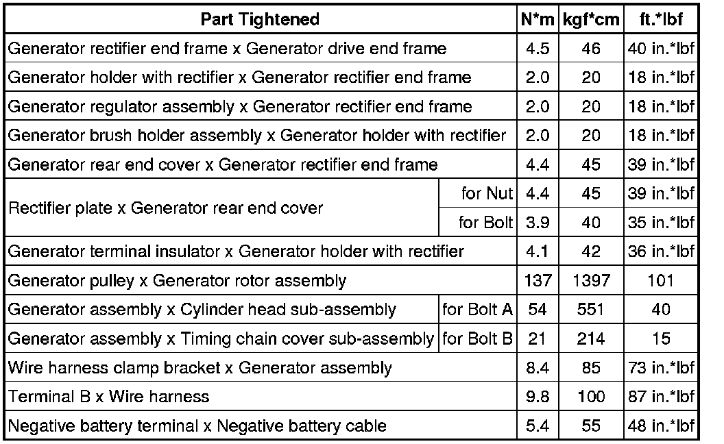 SPECIFICATIONS: 1NR-FE BATTERY / CHARGING: TORQUE SPECIFICATIONS