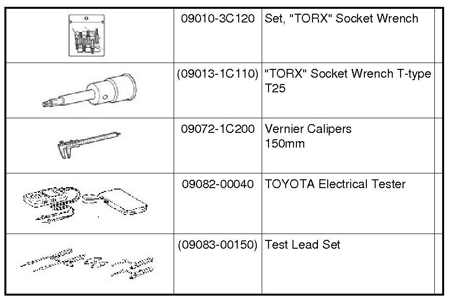 PREPARATION: 1NR-FE STARTING: RECOMMENDED TOOLS