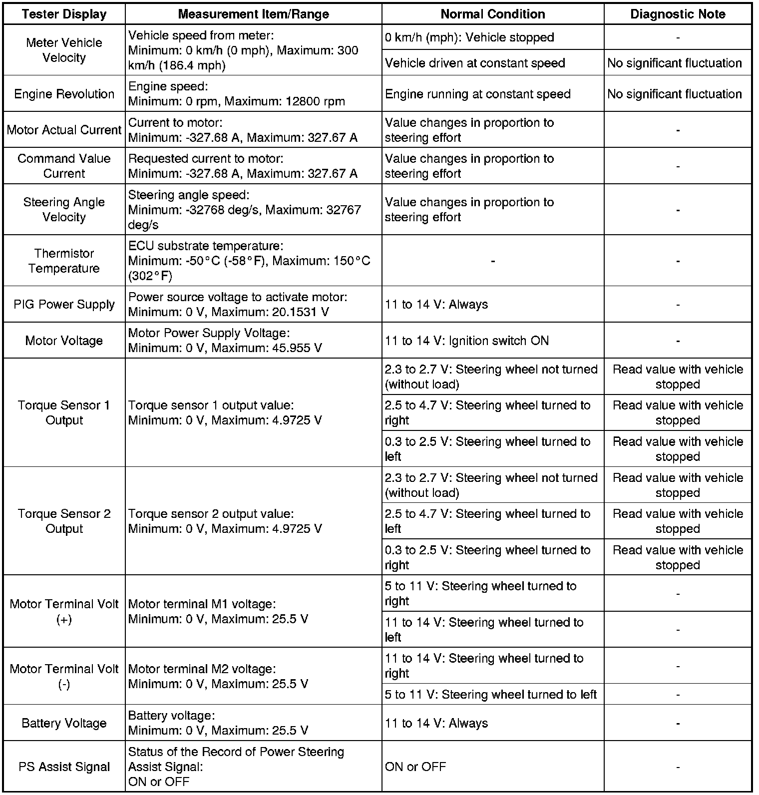 POWER ASSIST SYSTEMS: POWER STEERING SYSTEM: FREEZE FRAME DATA