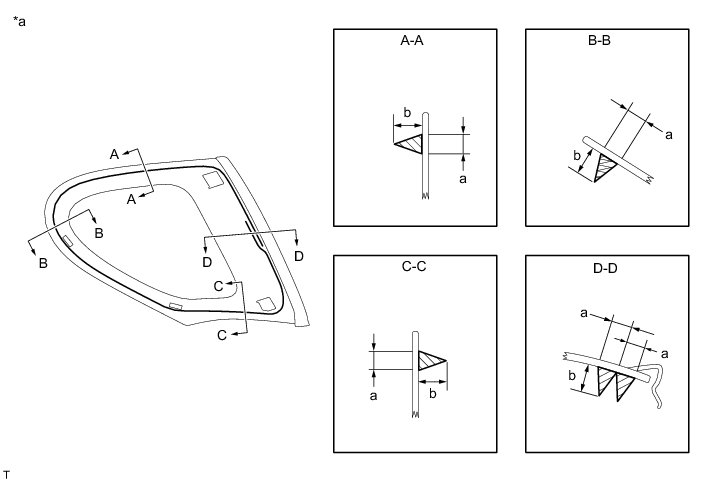 (3) Apply adhesive to the quarter window as shown in the illustration.