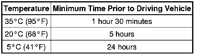 Do not to drive the vehicle within the time indicated in the table below.