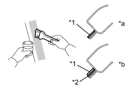 (a) Using a scraper, remove the damaged stoppers, dam and adhesive from the windshield glass.