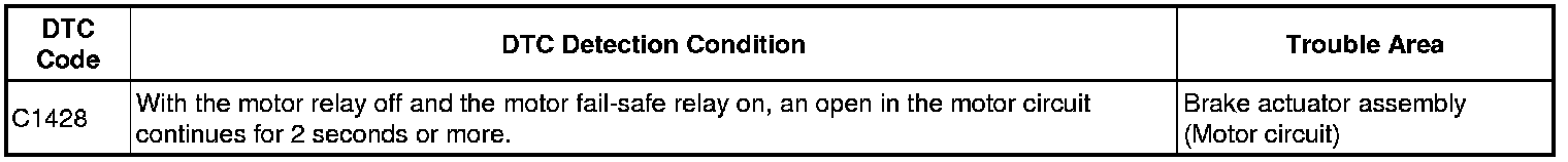 BRAKE CONTROL / DYNAMIC CONTROL SYSTEMS: VEHICLE STABILITY CONTROL SYSTEM: C1428: Motor Circuit Malfunction