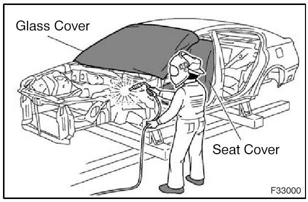 1. When welding, cover glass, seats, carpets, etc. with heat resistant fireproof covers to protect them.