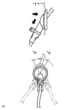 (f) Hold the grommet and pull it toward the outside of the vehicle. Then fix the grommet in place so that it is not tilted.