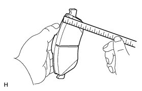 If the pad lining thickness is less than the minimum, replace the brake pad.