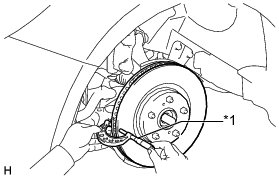 (c) Using a dial indicator, measure the disc runout 10 mm (0.394 in.) away from the outer edge of the front disc.