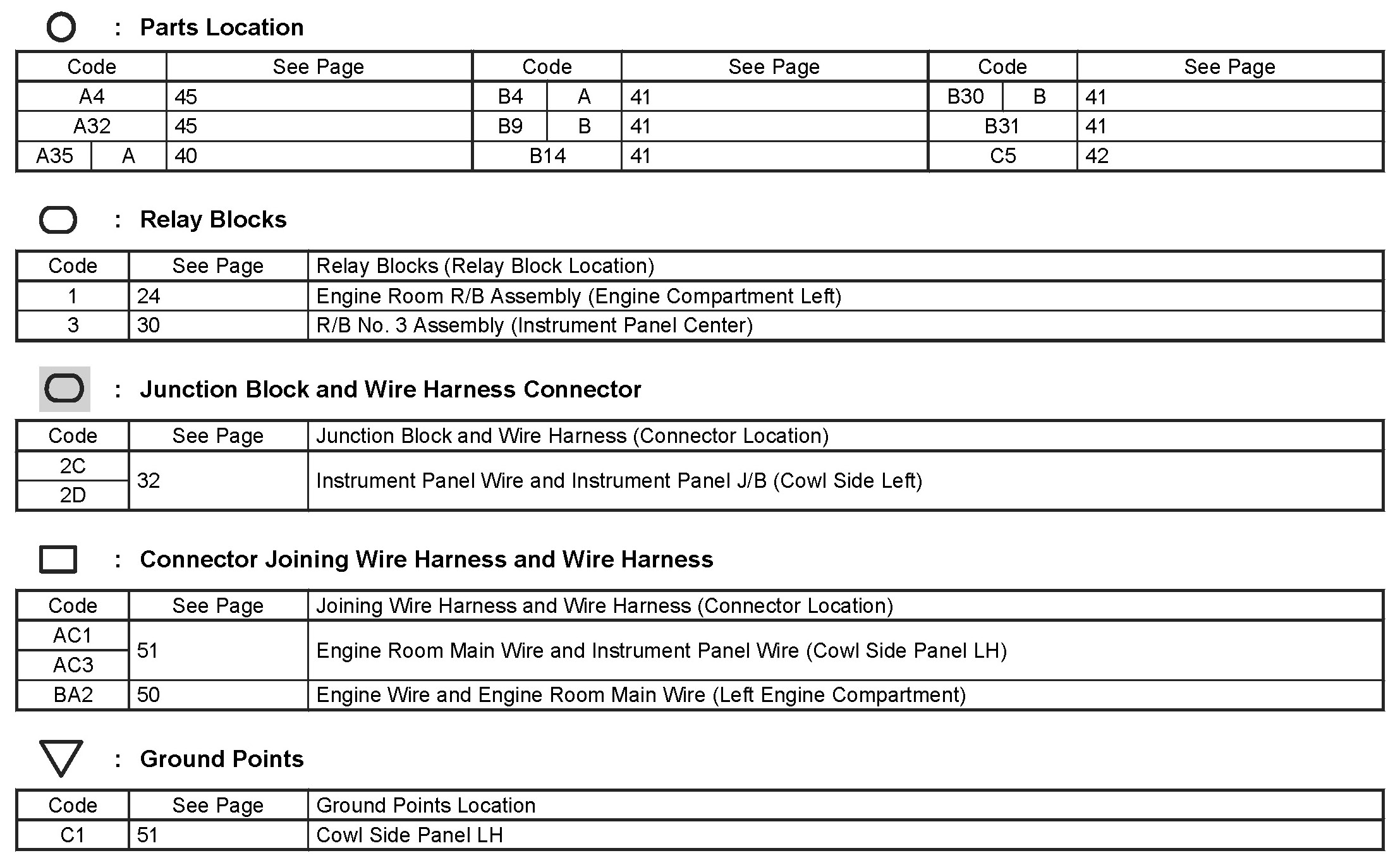 Locations: The locations of components, connectors, ground points, and splices referred to within these diagrams can be found at Vehicle Locations. Locations