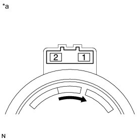 (b) Connect the positive (+) lead from the battery to terminal 2 and the negative (-) lead to terminal 1, and then check that the motor operates smoothly.