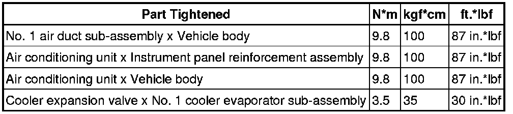 SPECIFICATIONS: HEATING / AIR CONDITIONING: TORQUE SPECIFICATIONS