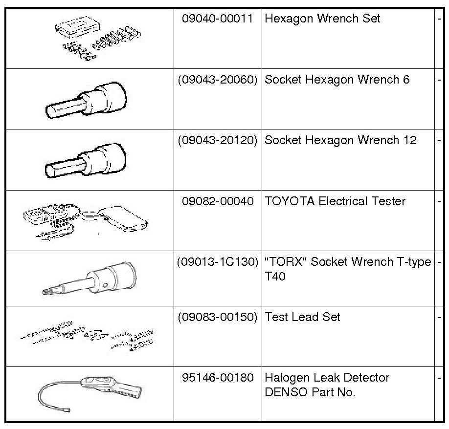 PREPARATION: HEATING / AIR CONDITIONING: RECOMMENDED TOOLS