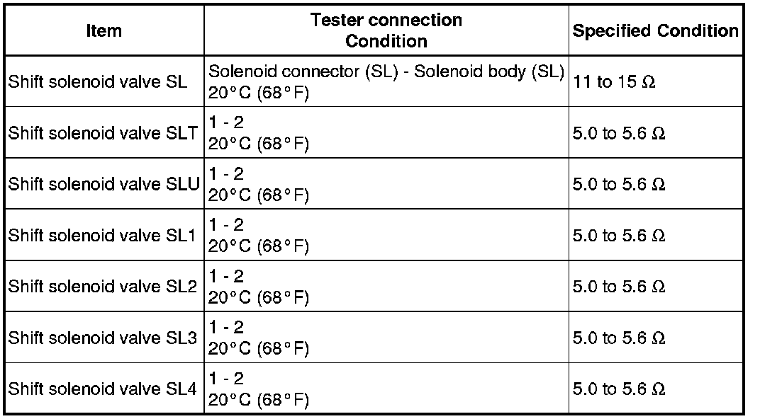 SPECIFICATIONS: U760E AUTOMATIC TRANSMISSION / TRANSAXLE: SERVICE DATA