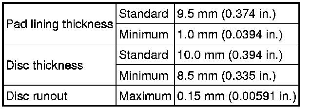 SPECIFICATIONS: BRAKE (REAR): SERVICE DATA