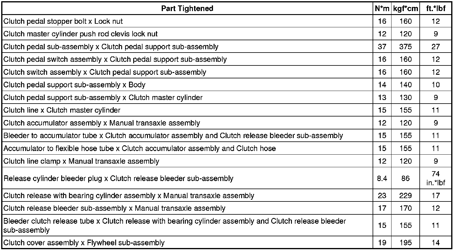 SPECIFICATIONS: CLUTCH: TORQUE SPECIFICATIONS