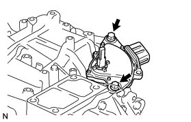 When removing the transmission valve body assembly, be careful not to allow the transmission revolution sensor and the transaxle case to interfere with each other.