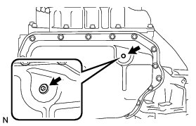 (a) Using a 6 mm hexagon socket wrench, remove the overflow plug from the automatic transaxle oil pan.