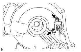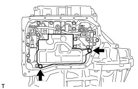 (a) Remove the 2 bolts and valve body oil strainer assembly from the transmission valve body assembly.