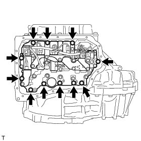 (a) Remove the 11 bolts and transmission valve body assembly from the transaxle case.