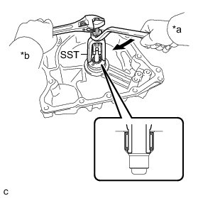(b) Remove the oil cooler tube union (inlet) from the transaxle case.
