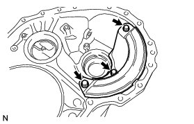 (a) Using a 6 mm hexagon socket wrench, remove the 3 No. 2 transaxle case plugs from the transaxle housing.