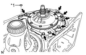(b) Remove the 7 bolts and oil pump assembly from the transaxle case.