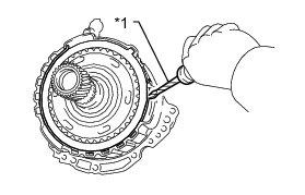 (d) Using a screwdriver, remove the oil seal ring from the rear multiple disc clutch assembly.