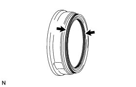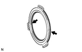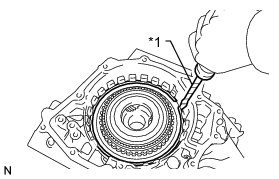 (a) While holding the oil pump assembly by hand, apply compressed air (392 kPa, 4.0 kgf/cm2, 57 psi) to the oil pump assembly and remove the No. 1 brake piston.