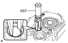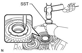 (a) Using SST and a press, remove the planetary gear assembly from the transaxle case.