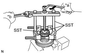 (a) Using SST, remove the counter driven gear bearing RH (inner race) from the counter driven gear.