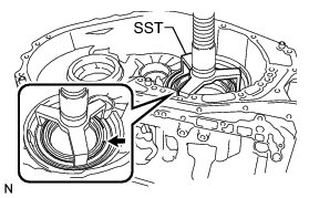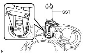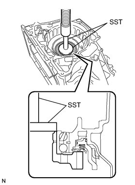(a) Using SST, remove the counter driven gear bearing LH (outer race) from the transaxle case.