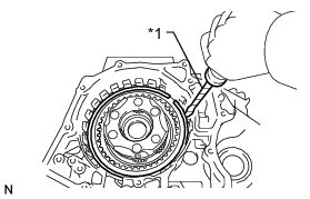 (a) Using a screwdriver, remove the snap ring from the planetary ring gear.