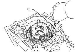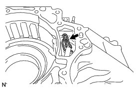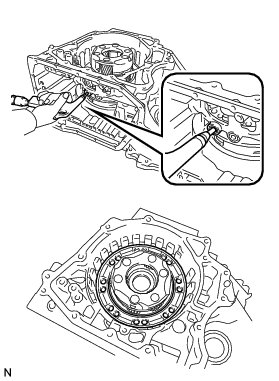 (a) Apply compressed air (392 kPa, 4.0 kgf/cm2, 57 psi) to the ATF hole and remove the No. 2 brake piston from the transaxle case.