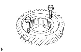 (b) As shown in the illustration, install 2 bolts and tighten them evenly until there is a clearance of approximately 5.0 mm (0.197 in.) between the counter drive gear and inner race.