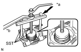 (a) Place SST on the brake piston return spring and compress the brake piston return spring with a press.