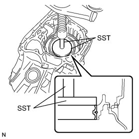 (b) Using SST, install a new counter driven gear bearing RH (outer race) to the transaxle housing.