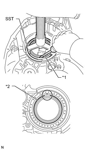 * Confirm that the snap ring is correctly seated in the groove of the transaxle case.