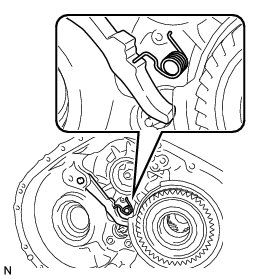 (a) Install the 1st and reverse brake return spring to the transaxle case.