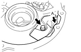 Tighten the bolt while part A of the No. 1 transmission case plate contacts the transaxle case as shown in the illustration.
