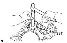 (a) Using SST and a hammer, install a new counter driven gear bearing LH (outer race) to the transaxle case.