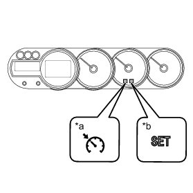 * The ECM displays "SET" on the combination meter when constant speed control is started by pushing the cruise control main switch to "- SET".