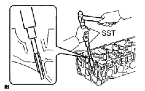 (c) Using SST and a hammer, tap out the guide bush.