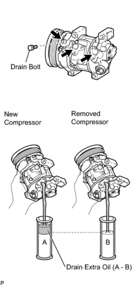 (The amount of oil inside a new compressor: 90 (+15) cc (3 (+0.51) fl.oz.)) - (The amount of oil remaining in the removed compressor) = The amount of oil to be removed when replacing the compressorPREPARATION: AIR CONDITIONING: LUBRICANT